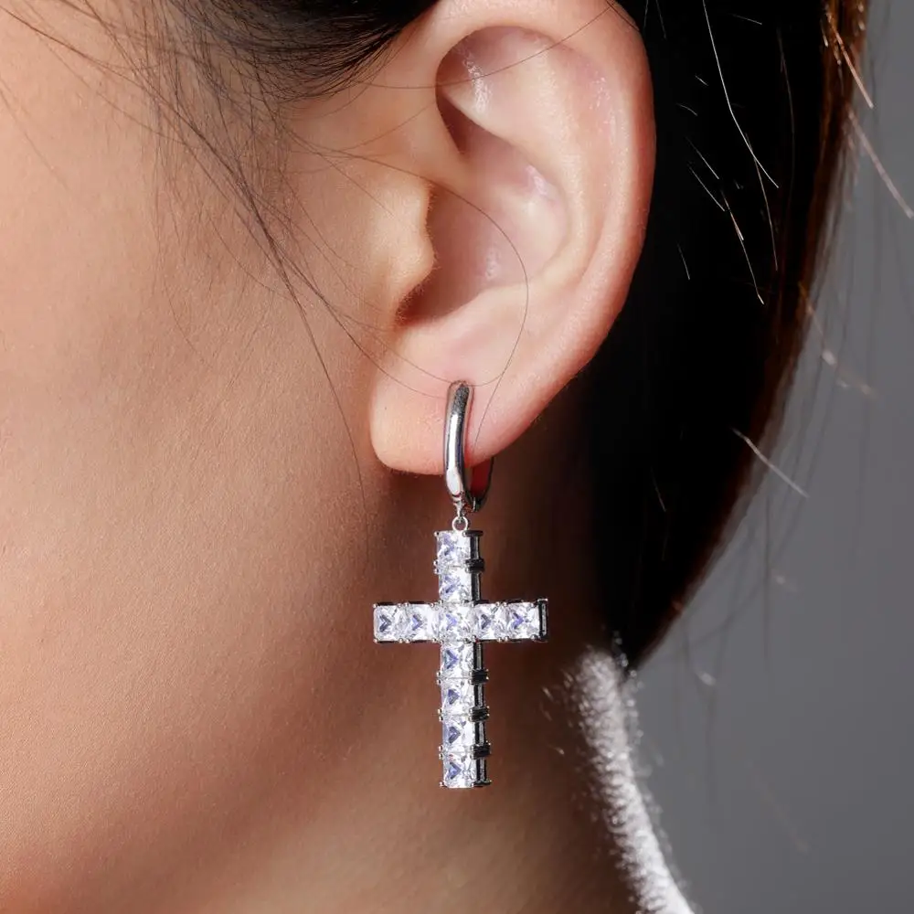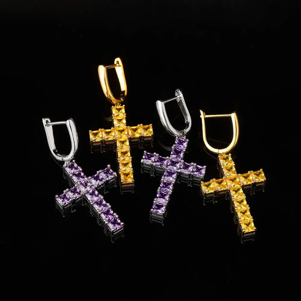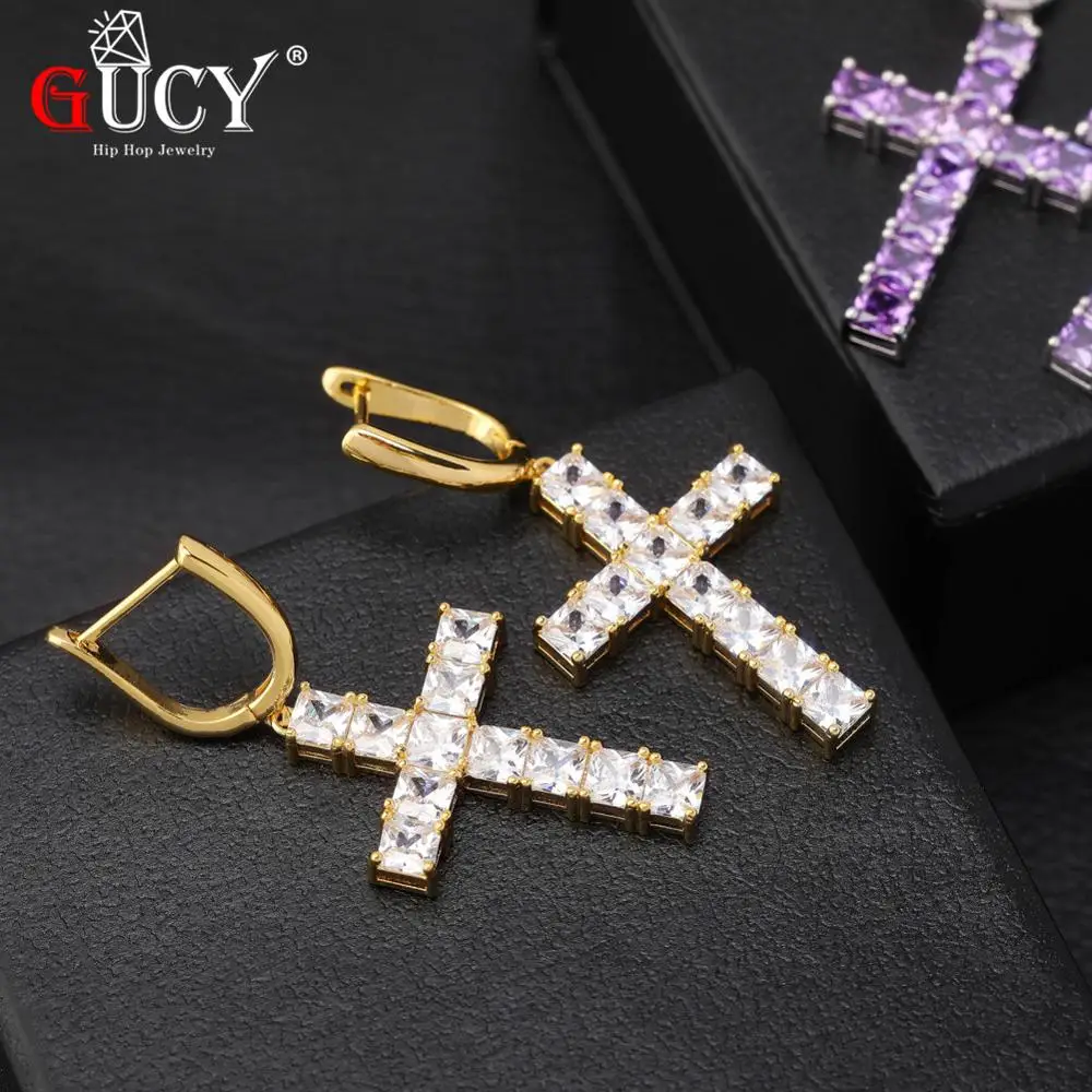 Buy GUCY Iced Zircon Ankh Cross Earring Gold Silver Color Micro Paved AAA Bling CZ Stone Earrings For M