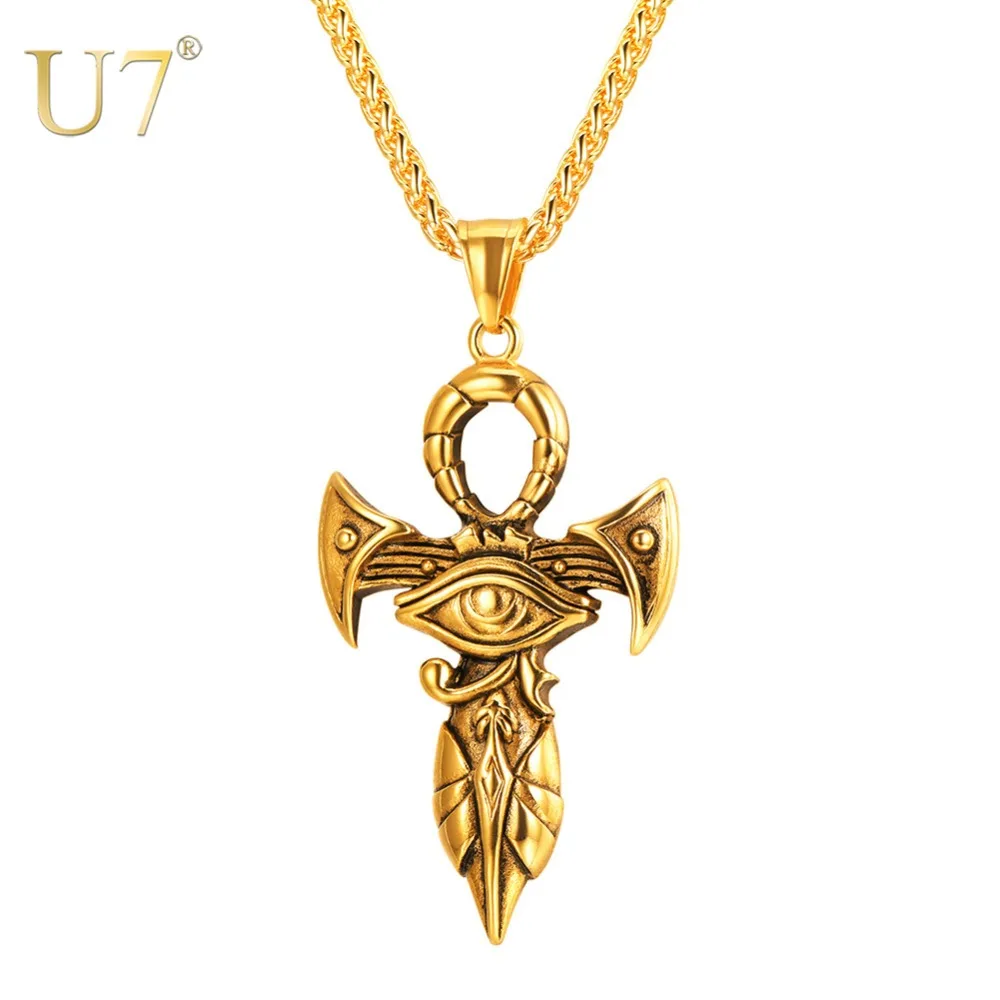 Best U7 The Eye Of Horus Ankh Necklace Ancient Egyptian Religion Jewelry Gift Unisex Punk Cross Pendant