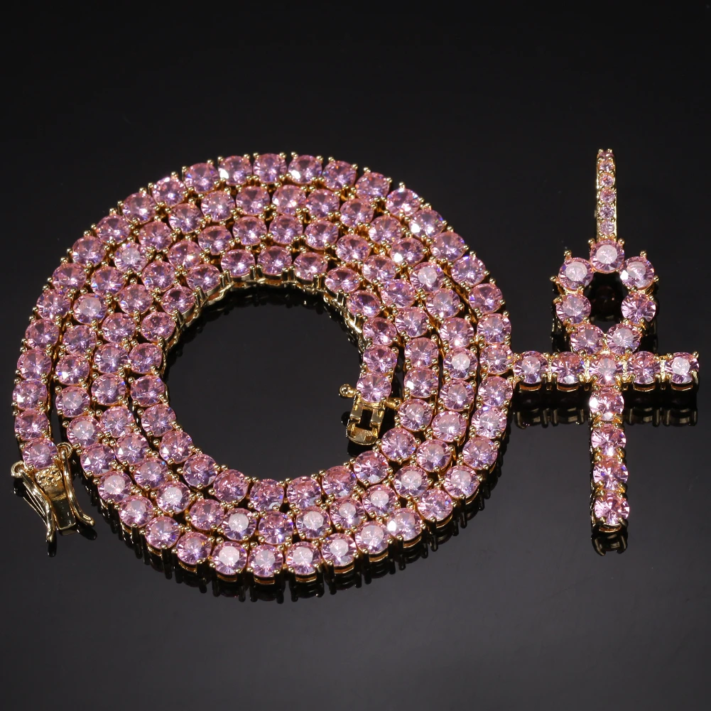 Buy UWIN 4mm Pink Iced Ankh Cross Pendant Cubic Zirconia Tennis Chains Gold Silver Color Necklace Color