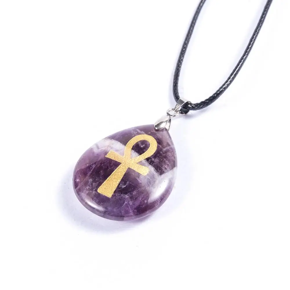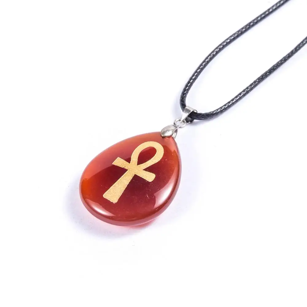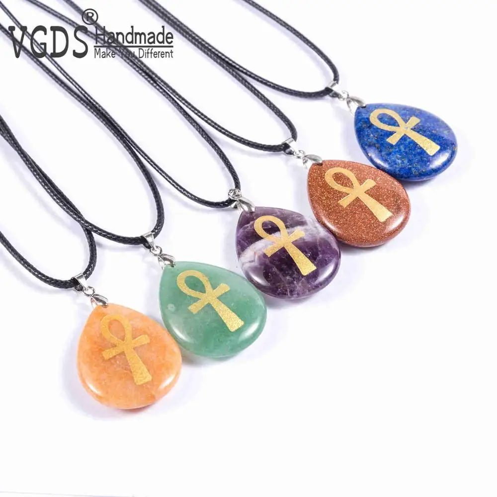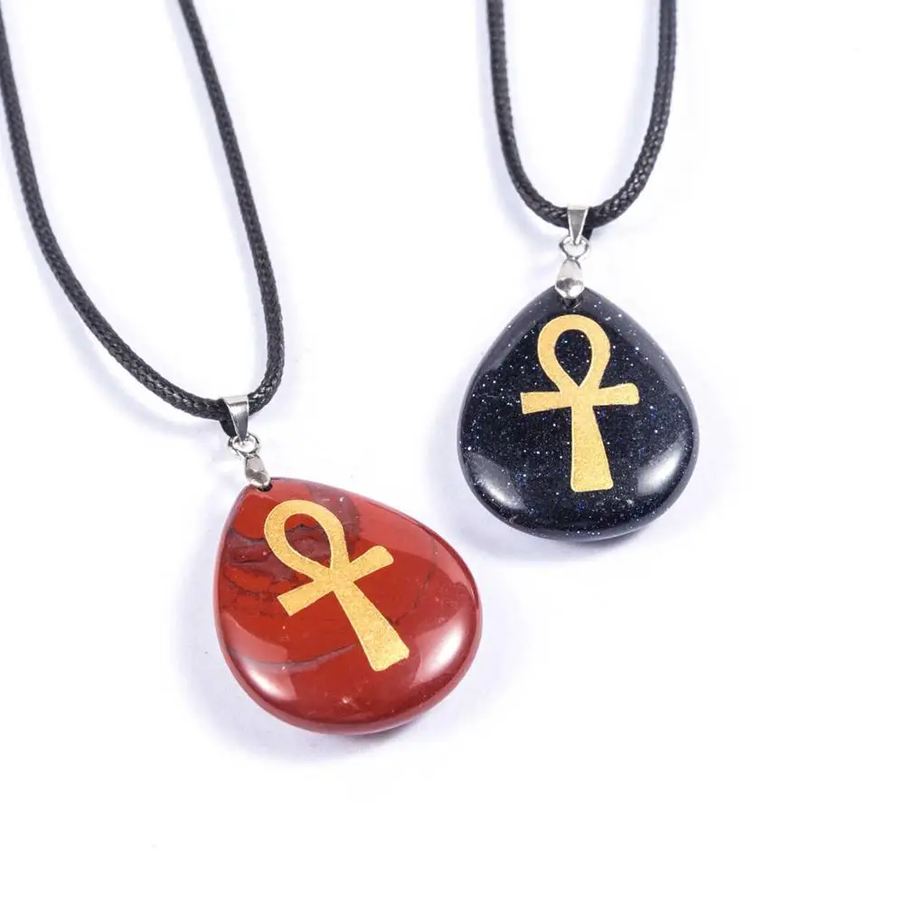 Promo Vampire Ankh Cross pendant Collares Egyptian Natural Crystal charm necklace Key To Life Woman Men j