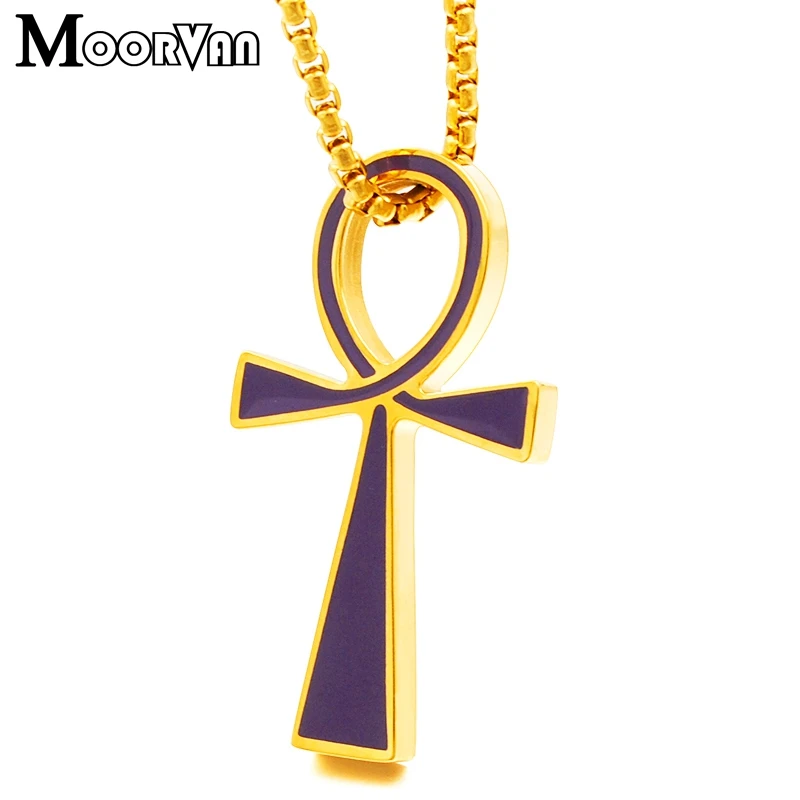 Best Moorvan women fashion casual personality stainless steel cross "Life" Egyptian Ankh pendant necklac
