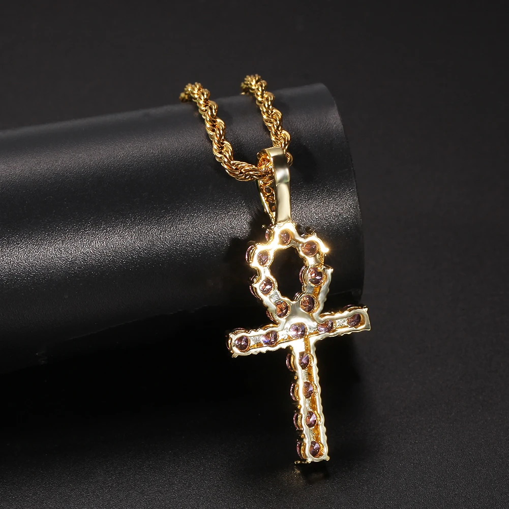 Best UWIN Women Ankh Cross Pendant PINK Iced Cubic Zirconia Stones Gold Silver Color Necklace Colored Fa