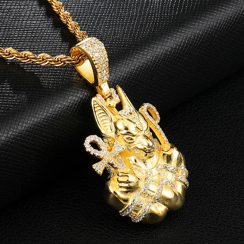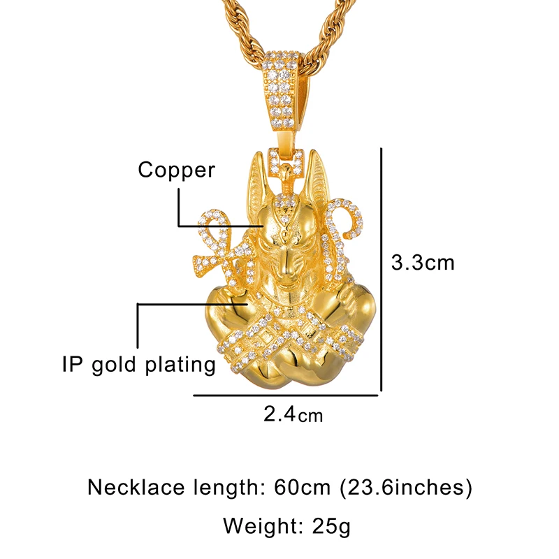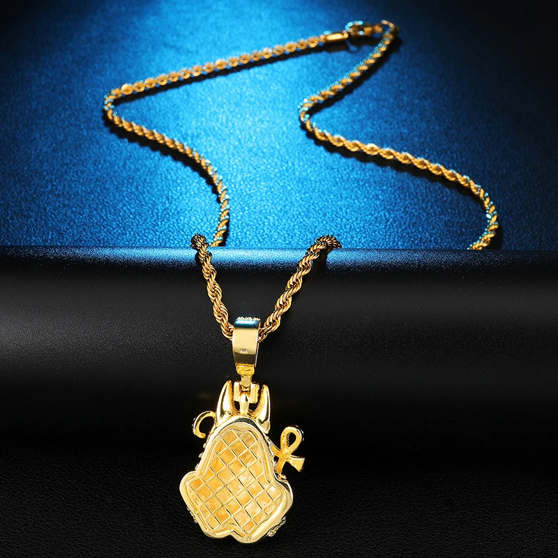 New Full AAA Iced Out Bling Cubic Zircon Copper Egypt Ankh Cross Anubis Pendants & Necklaces For Men HI