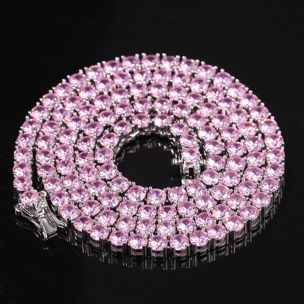 New Uwin Pink Baby Blue CZ Tennis Chain With Ankh Cross Pendant 4mm Cubic Zirconia Gold Silver Necklace