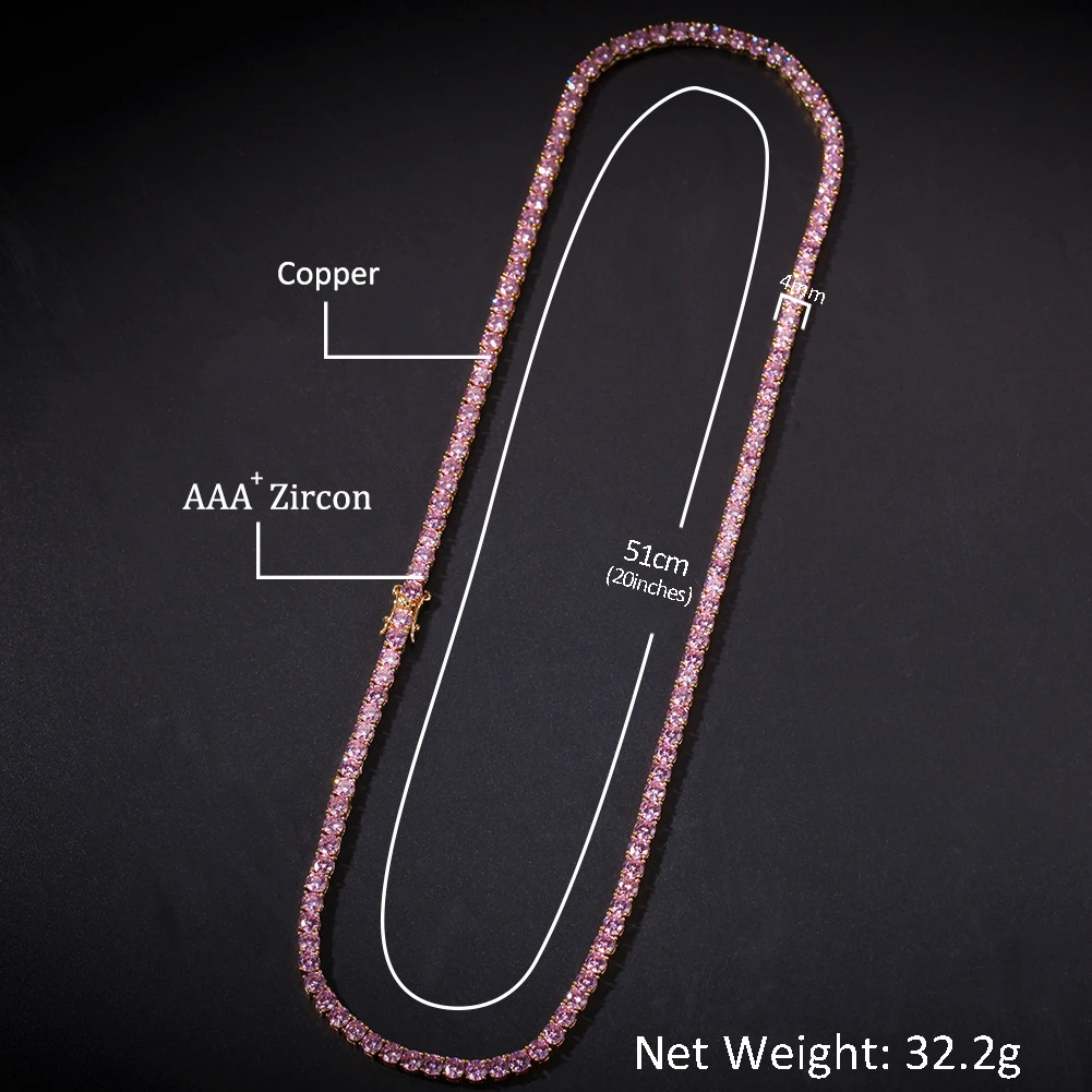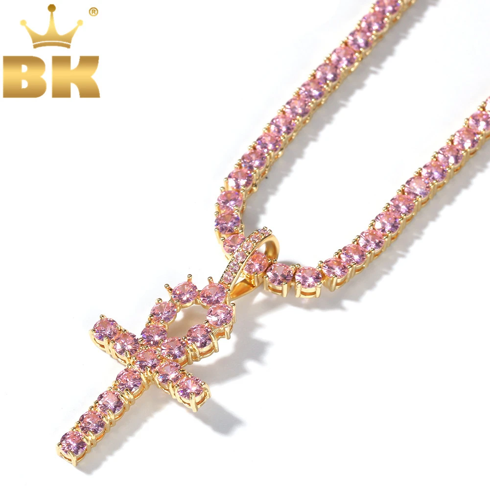 Promo THE BLING KING 4mm Pink Ankh Cross Pendant Iced Cubic Zirconia Tennis Chains Gold Silver Color Neck