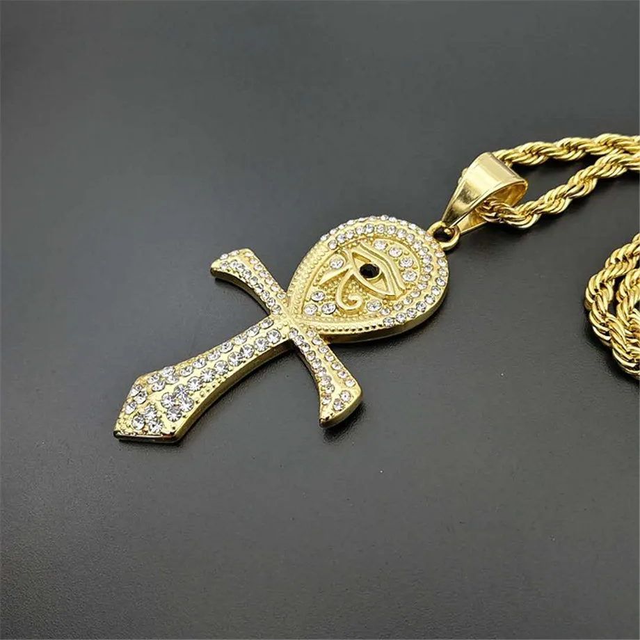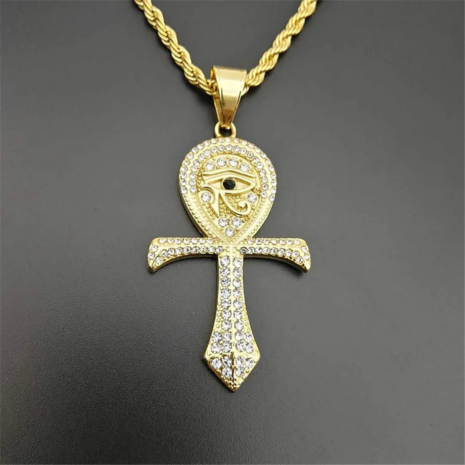 Buy Egyptian Ankh Cross Pendant Necklace For Women/Men Gold Color Stainless Steel Eye of Horus Necklace