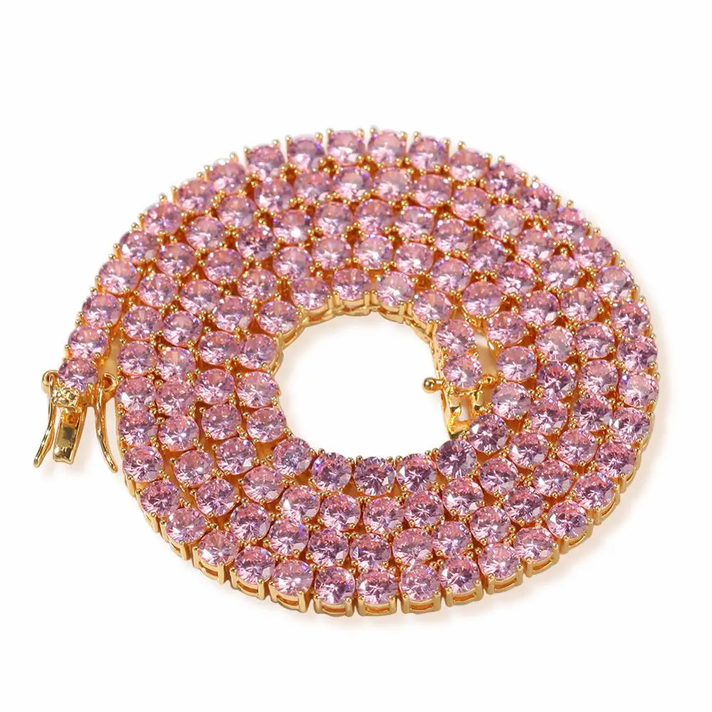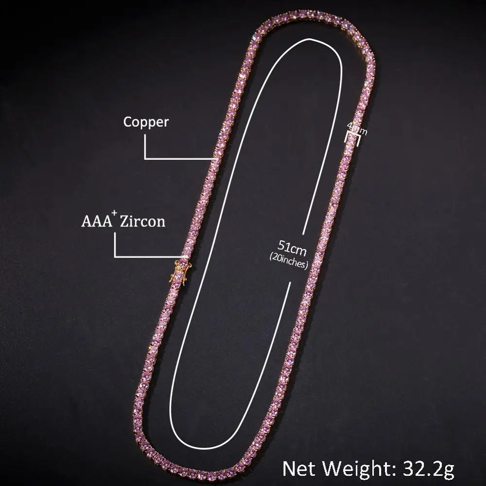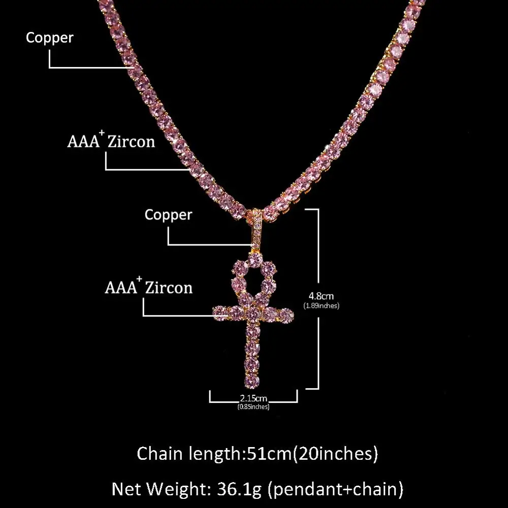 Promo AAA+ Pink Cubic Zirconia Ankh Corss Pendants Bling Ice Out 1 Row Pink CZ Stone Tennis Chain Necklac