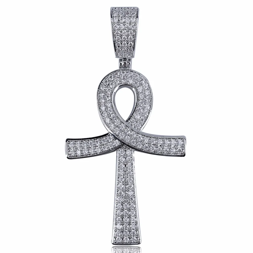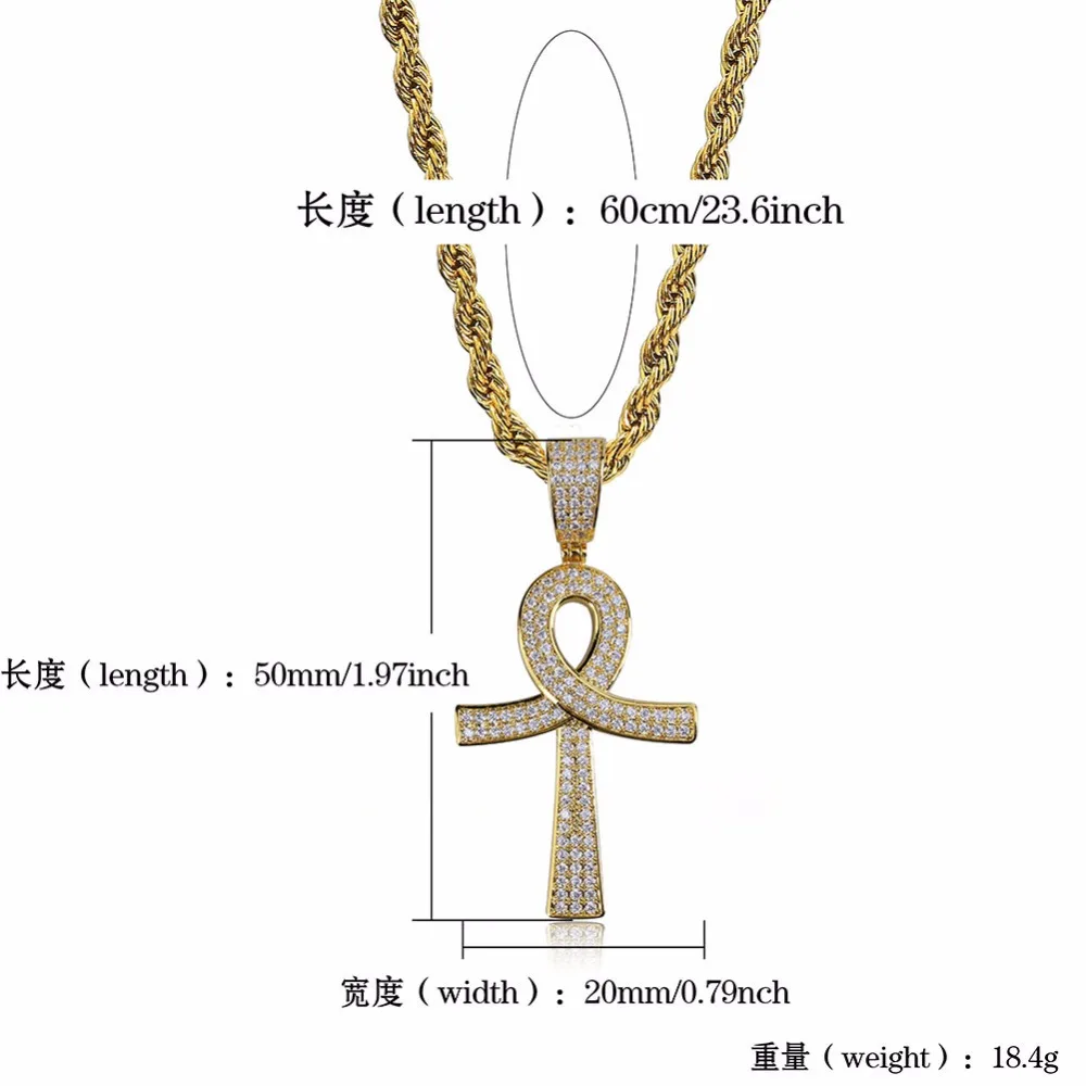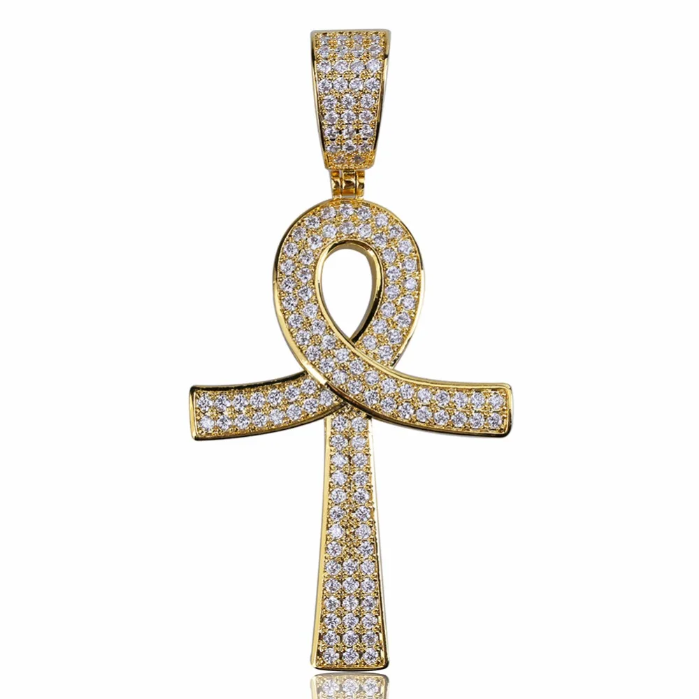 New Egyptian Ankh Key Cross Pendants Necklaces for Men Women Gold Silver Color CZ Crystal Paved Bling I