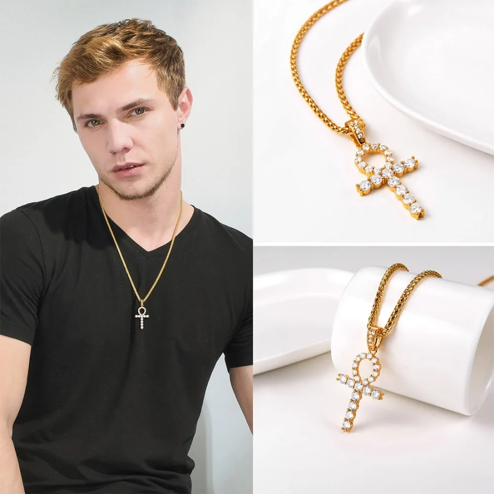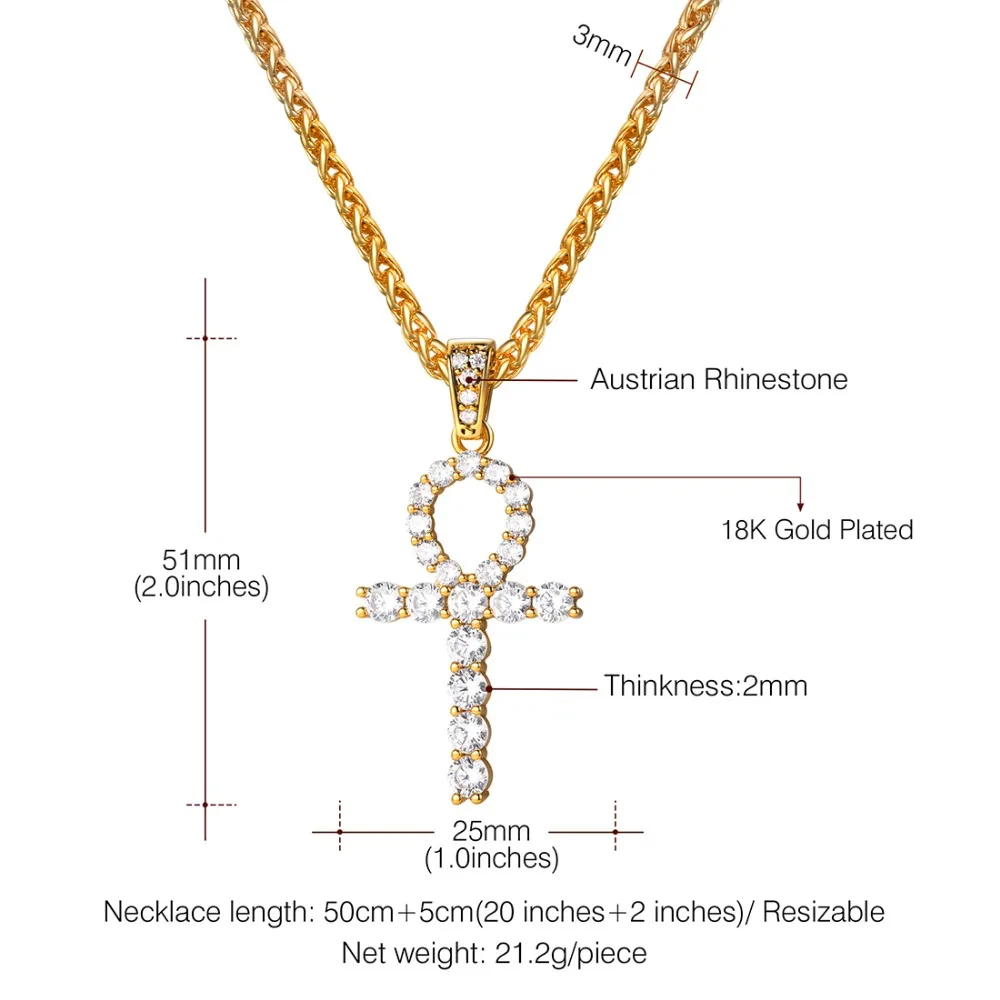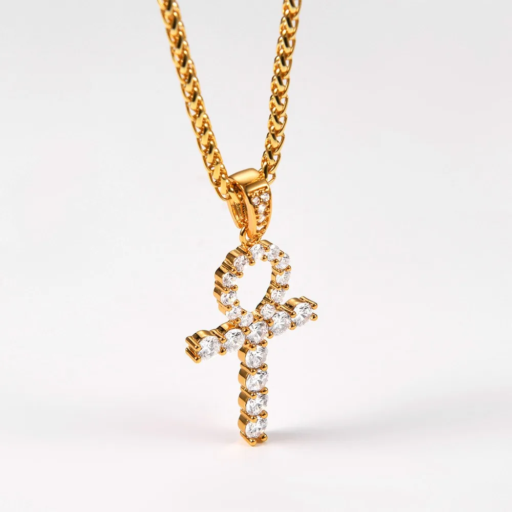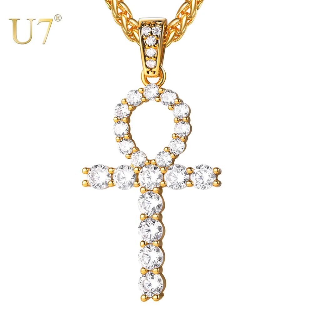 Best U7 Ice Out Ankh Cross Pendant Gold-color Chain Hip Hop Bling CZ Stone Egyptian Pendant Necklace for