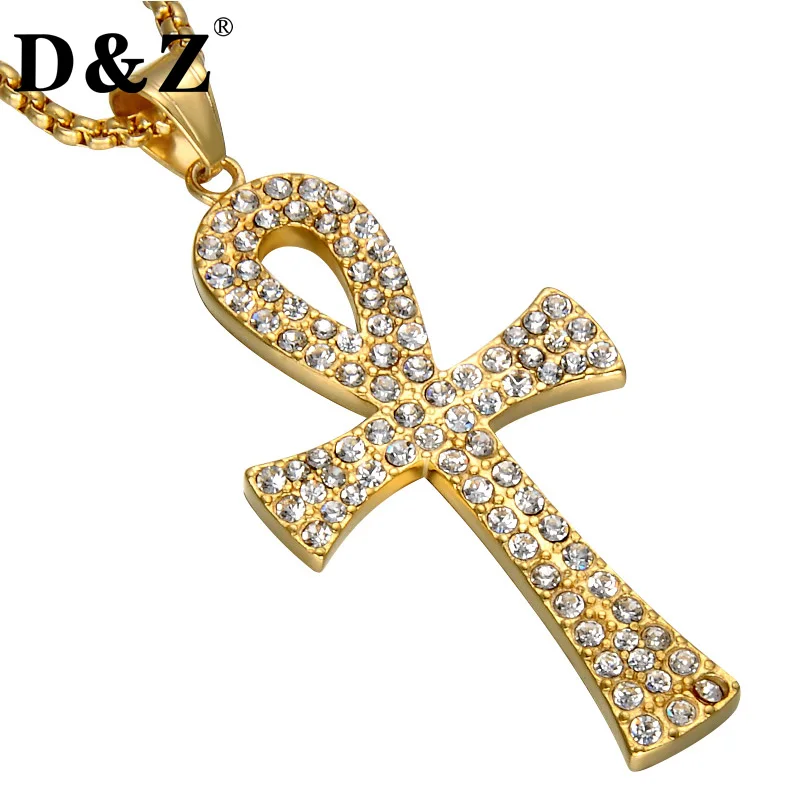 Buy D&Z Ice Out Bling Gold Color Ankh Cross Pendant Necklace Stainless Steel Crux Ansata Cross Necklace