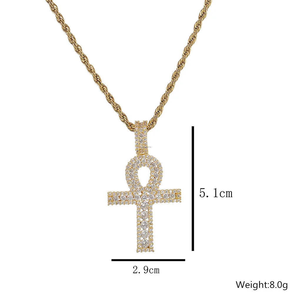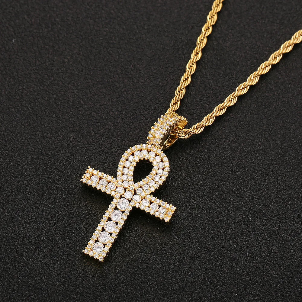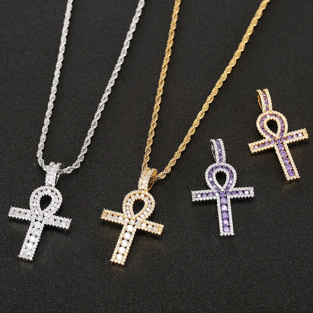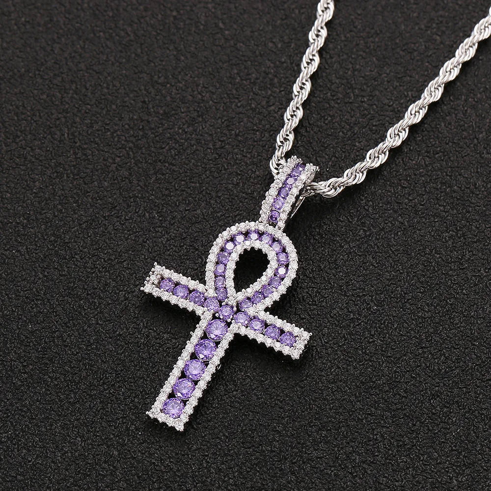 Buy Hip Hop Purple White Cubic Zirconia Bling Ice Out Life Symbol Ankh Cross Pendants Necklace for Men