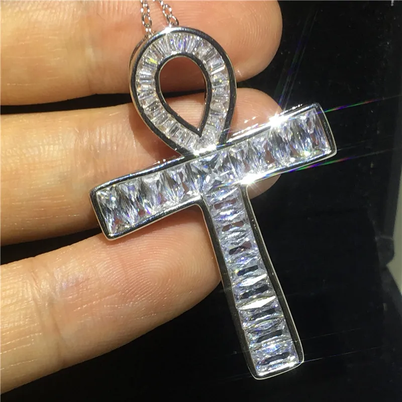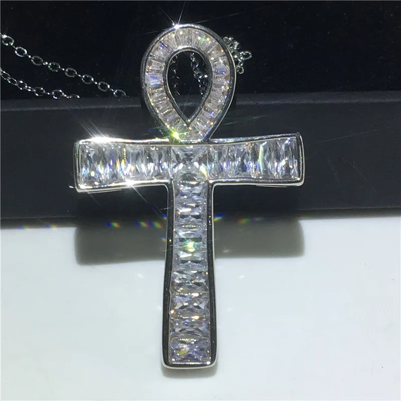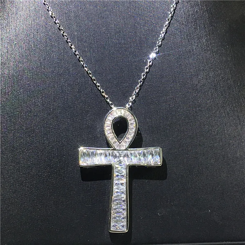 New Vecalon ANKH Cross pendant 925 Sterling silver 5A Cz Stone Chain cross Pendant necklace for Women M