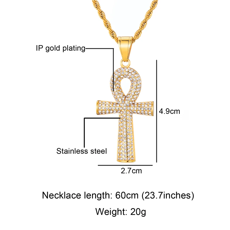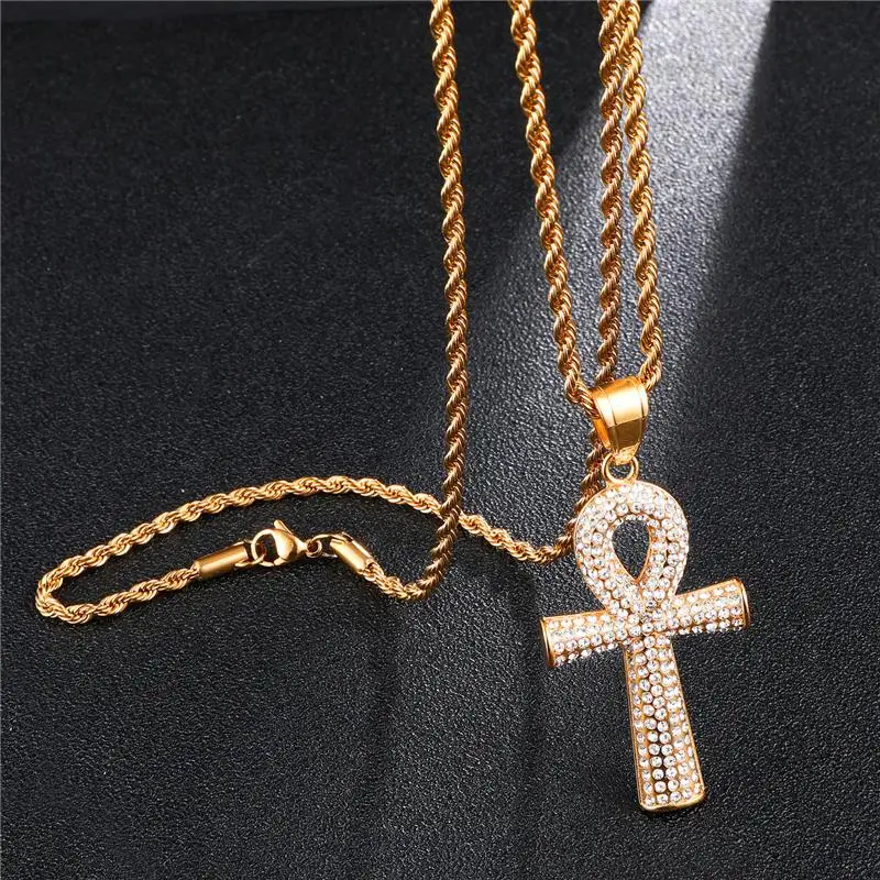 Buy HIP Hop Iced Out Bling Cross Full Rhinestone Ankh Pendants & Necklaces For Men Jewelry Key of Life