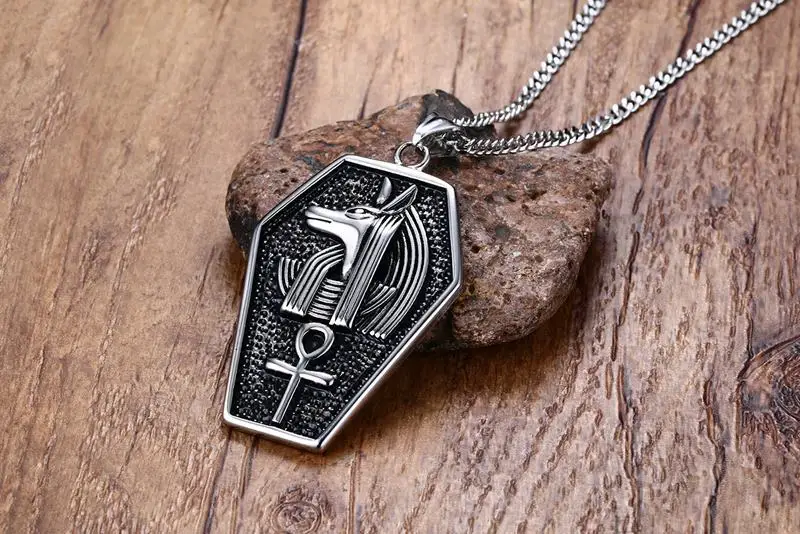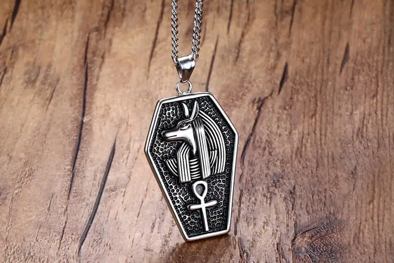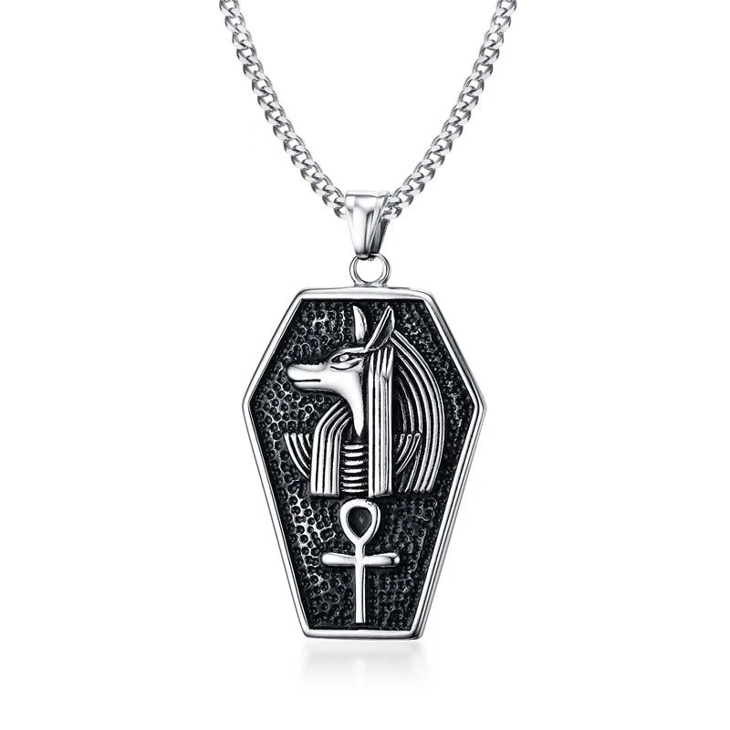 Promo Vintage Punk Style Stainless Steel Egypt Ankh Cross Anubis Pendants Necklace for Men Rock Jewelry H