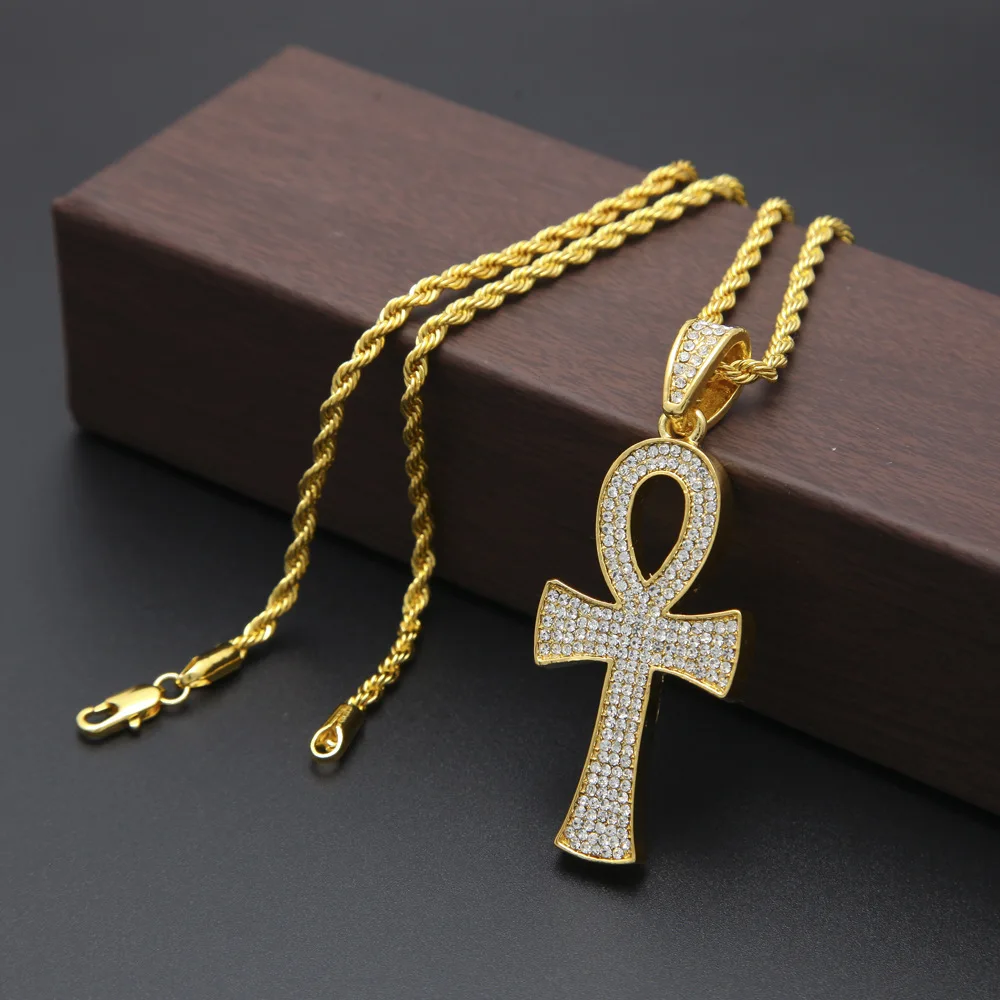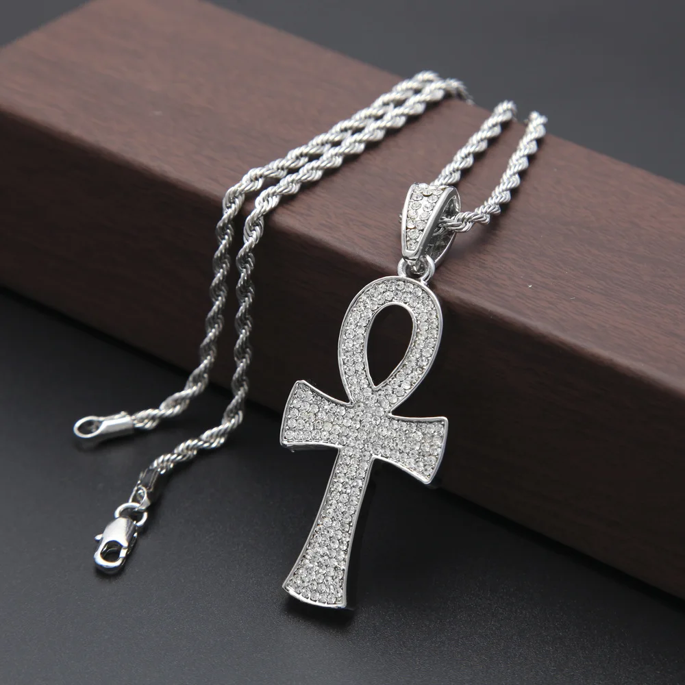 Best Egyptian Key of Life Pendant Necklace Men Religious Iced out Ankh charm Gold Silver color cuban cha