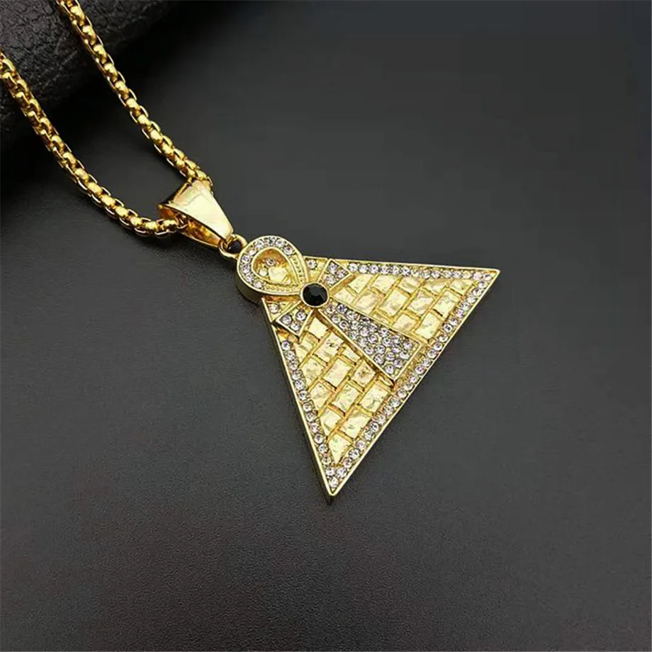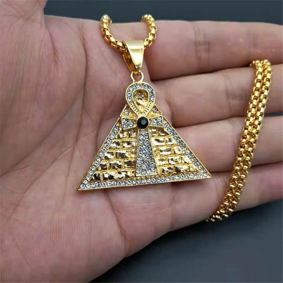 Best Egyptian Pyramid Ankh Cross Pendant Necklace For Women/Men Gold Stainless Steel Iced Out Zircon Nec