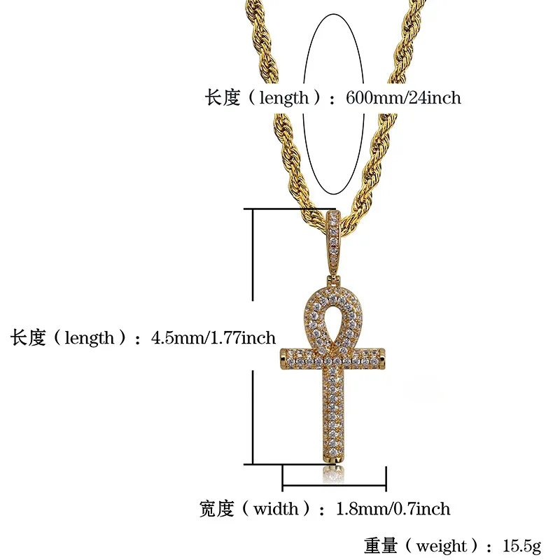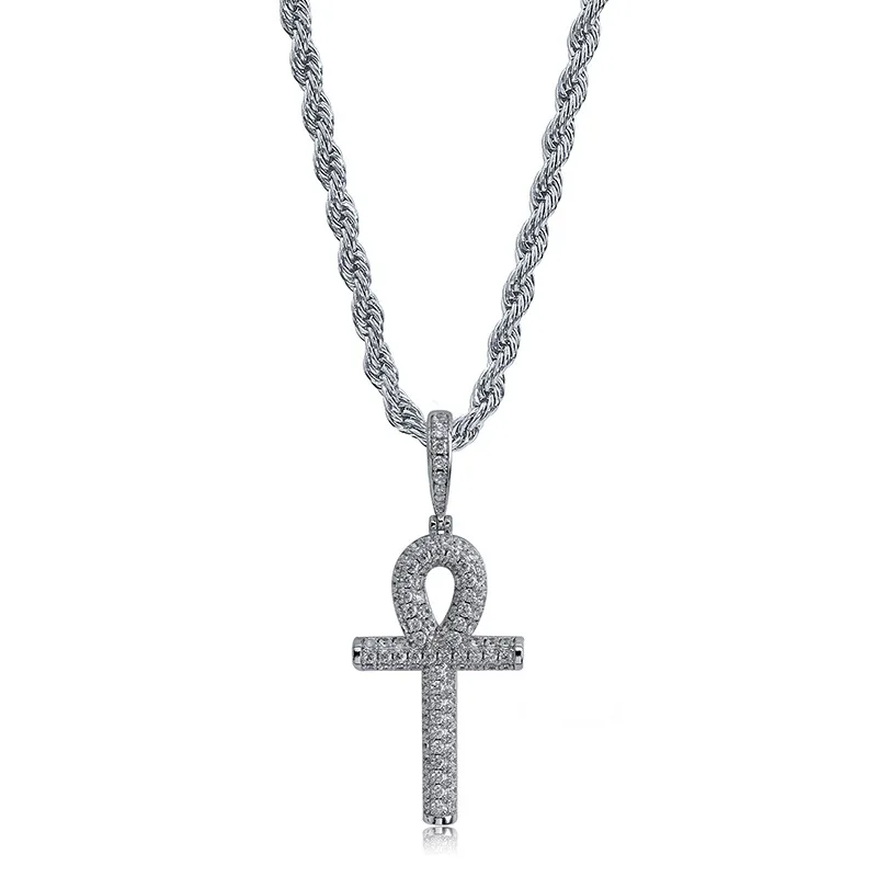 New Hip Hop AAA CZ Stone Paved Bling Iced Out Ankh Cross Pendants Necklace for Men Women Fashion Jewelr