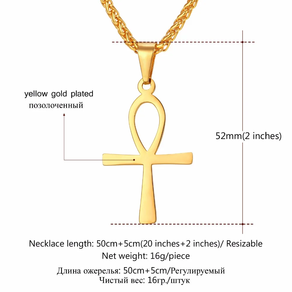 Best Ankh/Crux Ansata Cross Key of the Nile Pendant Necklace Stainless Steel/Gold Color Egyptian Symbol