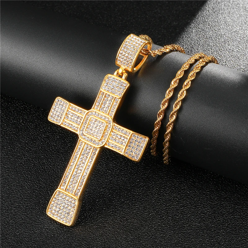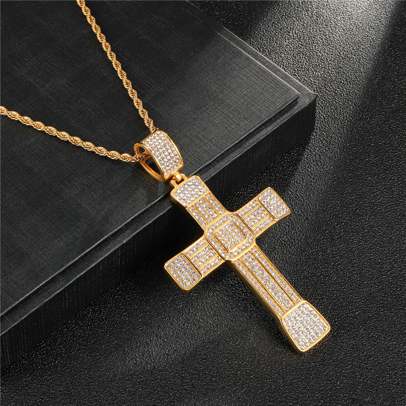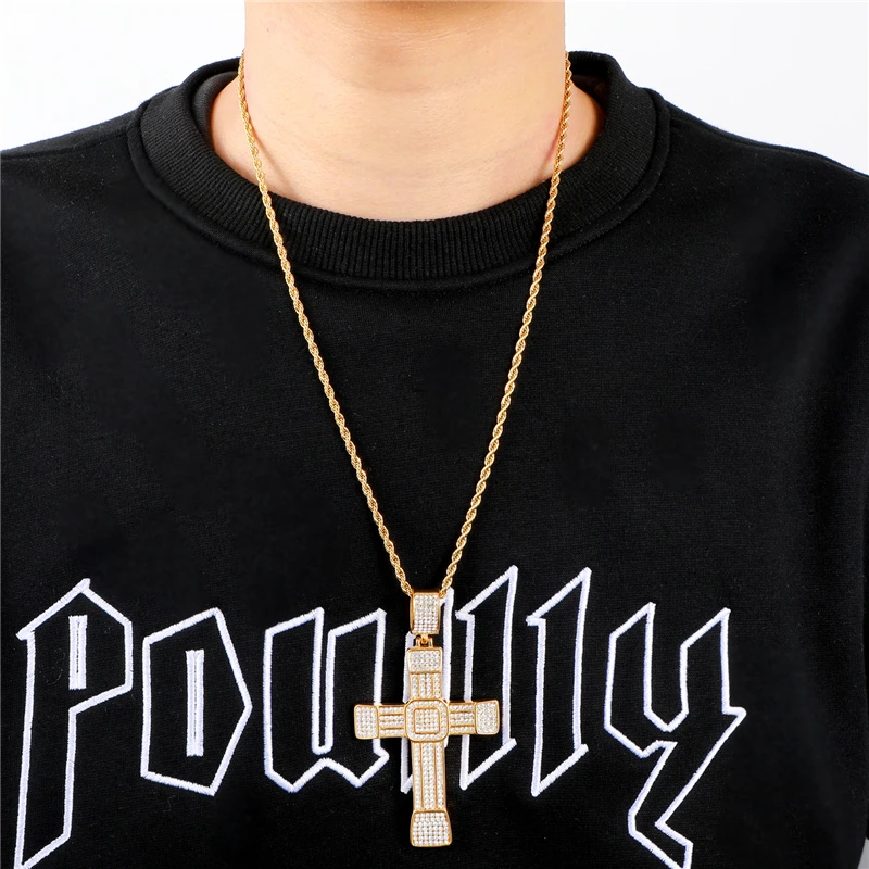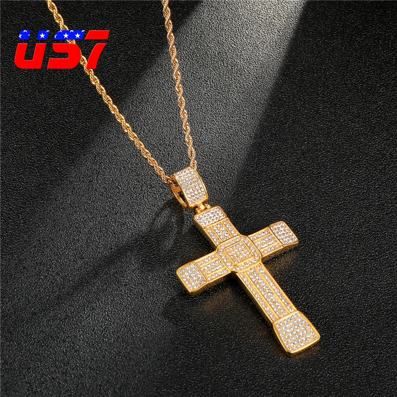 Best US7 Iced Zircon Ankh Pendant Necklace with Gold Link Chain Fashion Hip Hop Jewelry Gifts For Men