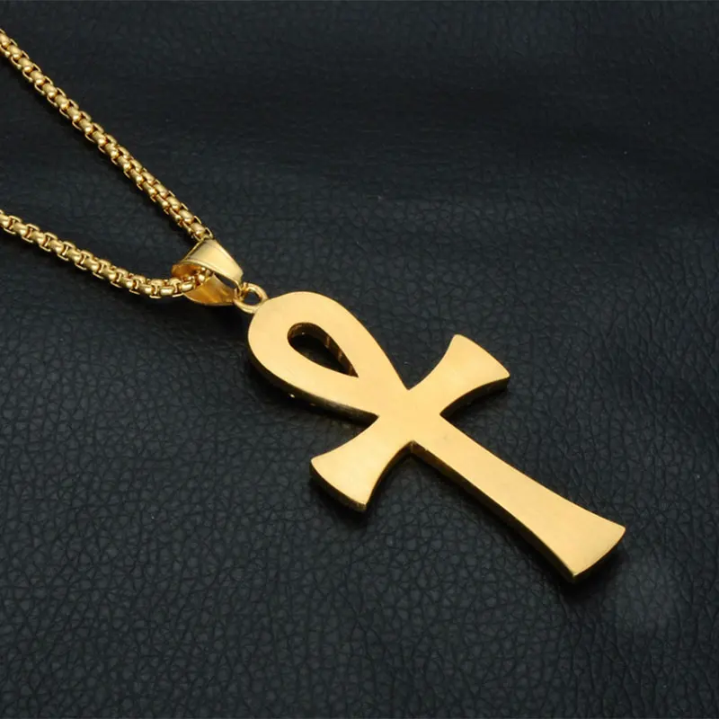 Best Crystal Ankh Cross Necklace Pendant Men Gold Stainless Steel Key of Life Egyptian Hieroglyph Neckla
