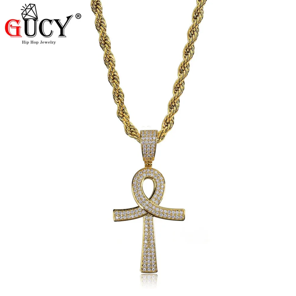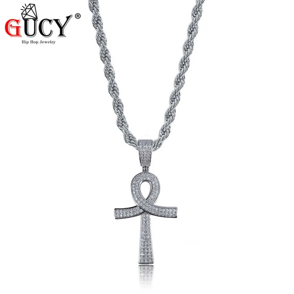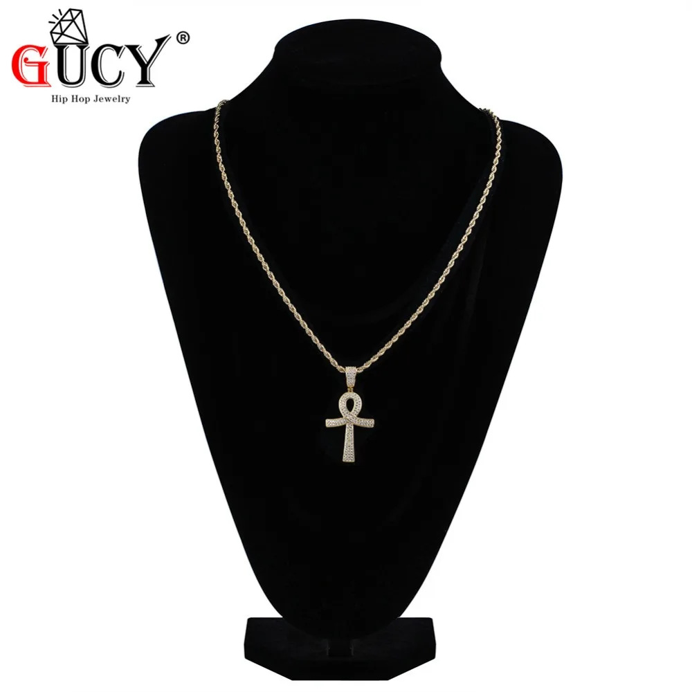 Buy GUCY Hip Hop Ankh Cross Pendant Necklace All Iced Out Micro Paved AAA+ CZ Necklaces Men Women Key J