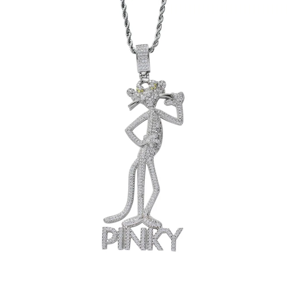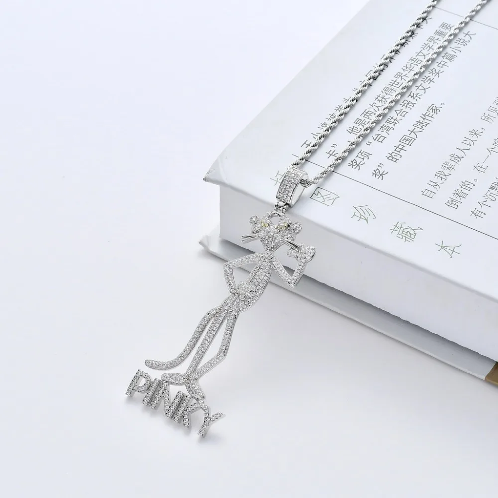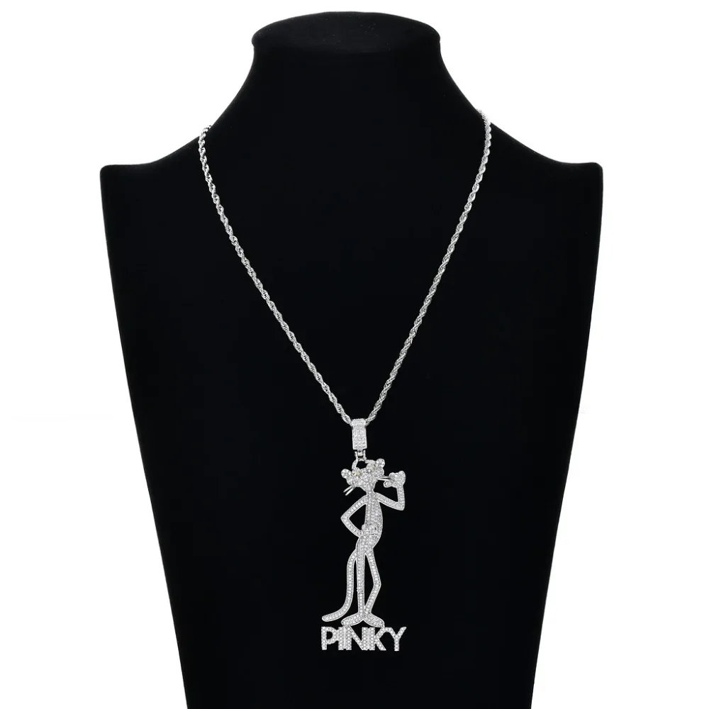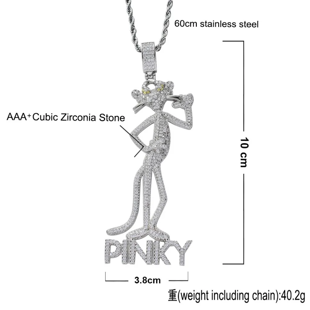 Best Micro Paved AAA Cubic Zirconia Bling Iced Out Ankh Cross Pink Panther Pendants Necklace for Men Hip
