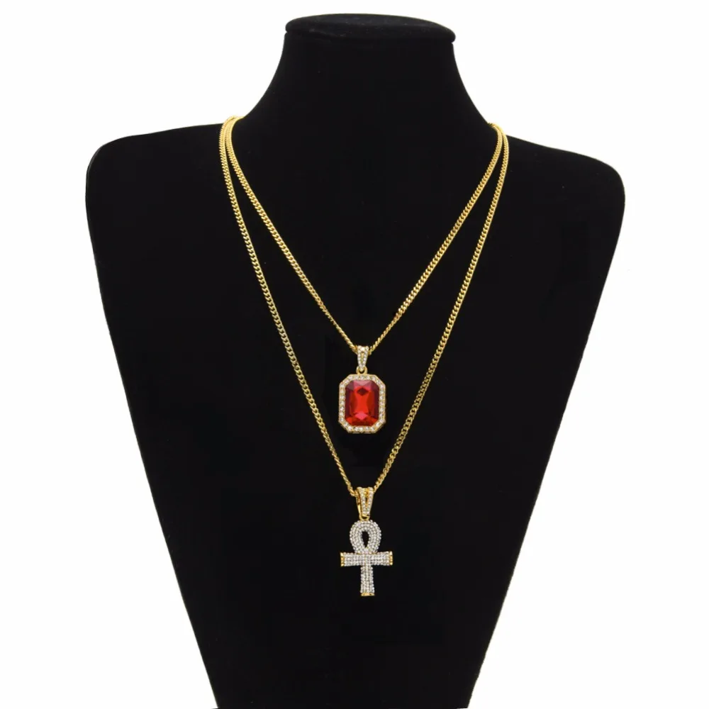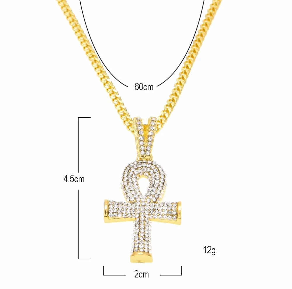 Best Egyptian Ankh Key of Life Cross Pendant Mini Square Bling Rhinestone charm Cuban Link chain necklac