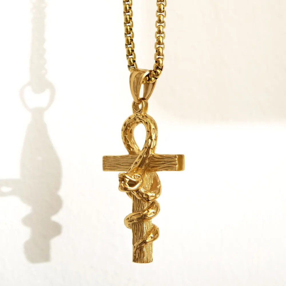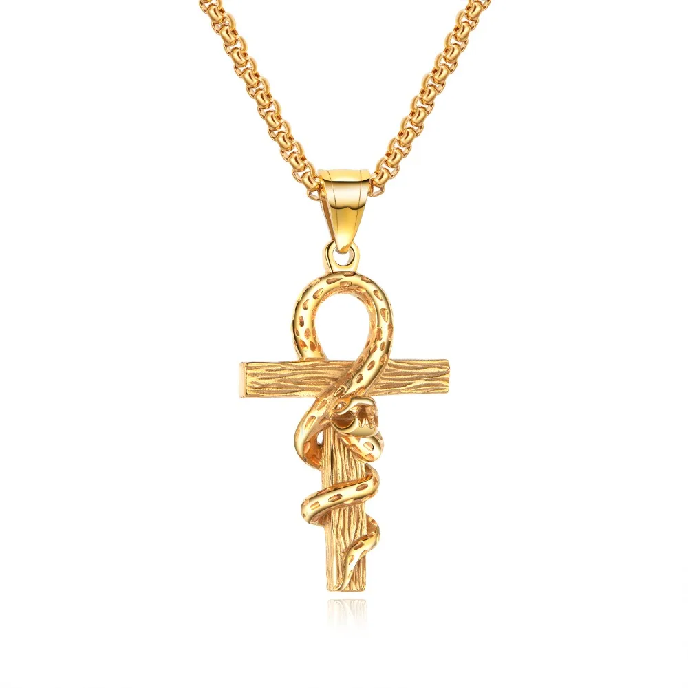 Promo FATE LOVE Fashion Jewelry Stainless steel Egyptian Ankh Crux Ansata Cross Novelty Snake Shape Men N