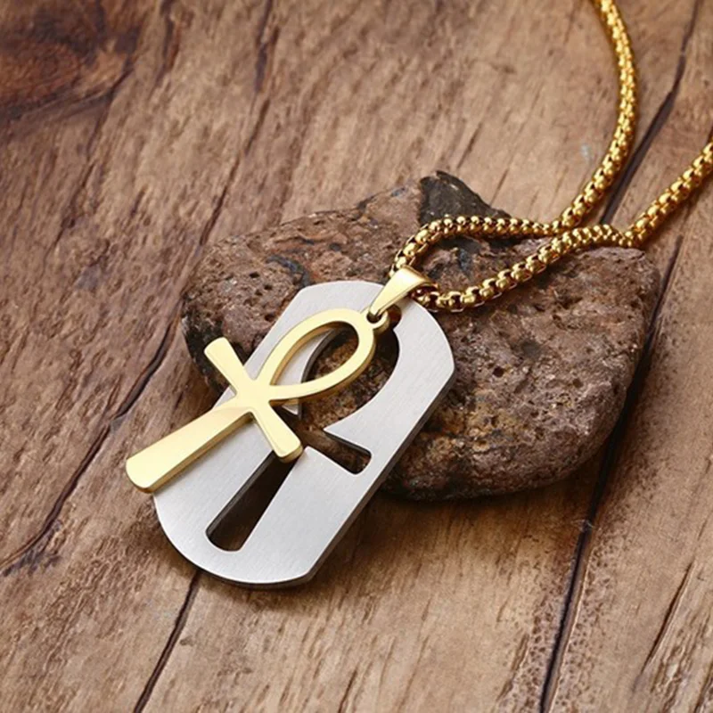 Promo Removable Egypt Ankh Cross Pendant Necklace Stainless steel Antique Egyptian Mysterious Life Charms