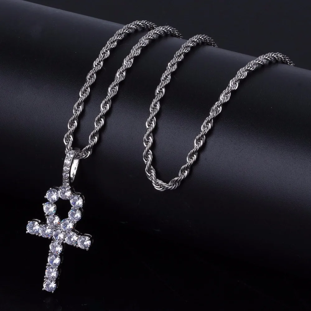 Best Gold Silver Copper Prong Setting CZ Stone Bling Ice Out Egyptian Ankh Cross Pendants Necklaces Men