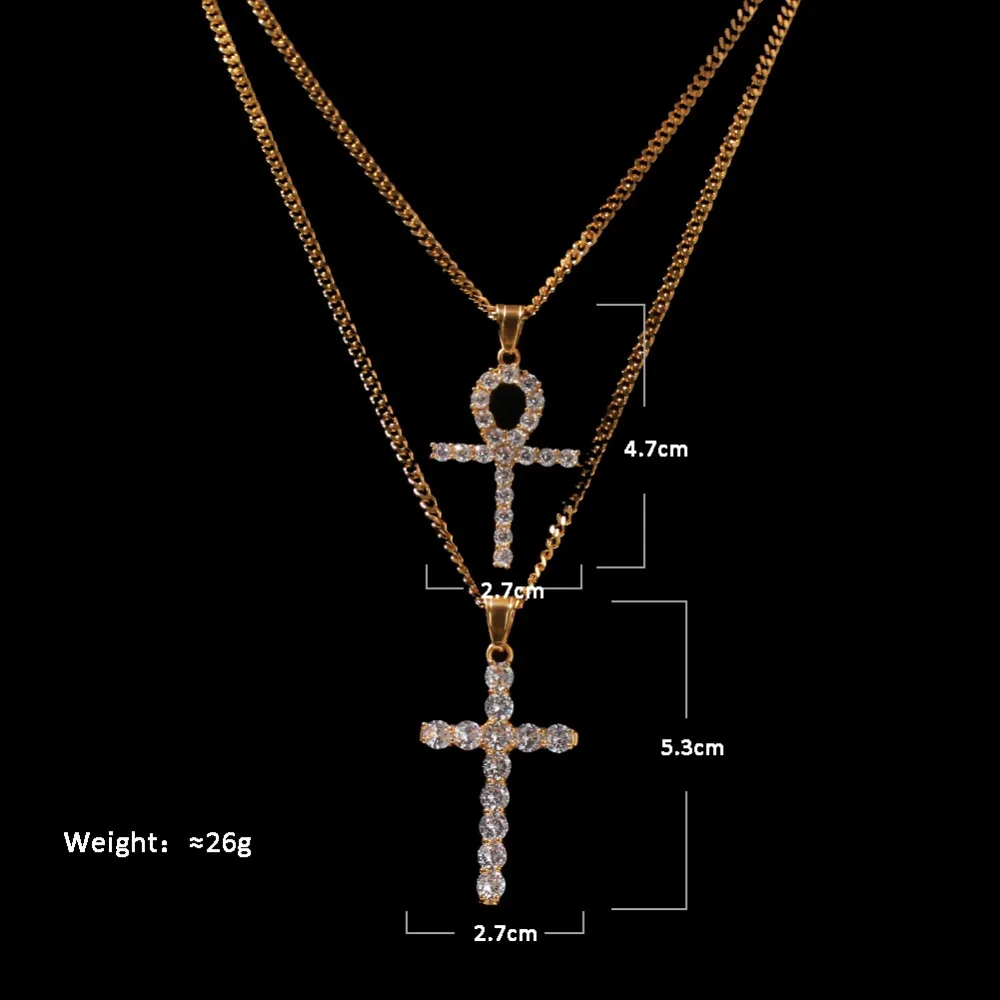 Buy Hip Hop AAA CZ Stones Bling Ice Out Ankh Cross Necklace Two Pendants set Men Rapper Jewelry with 24