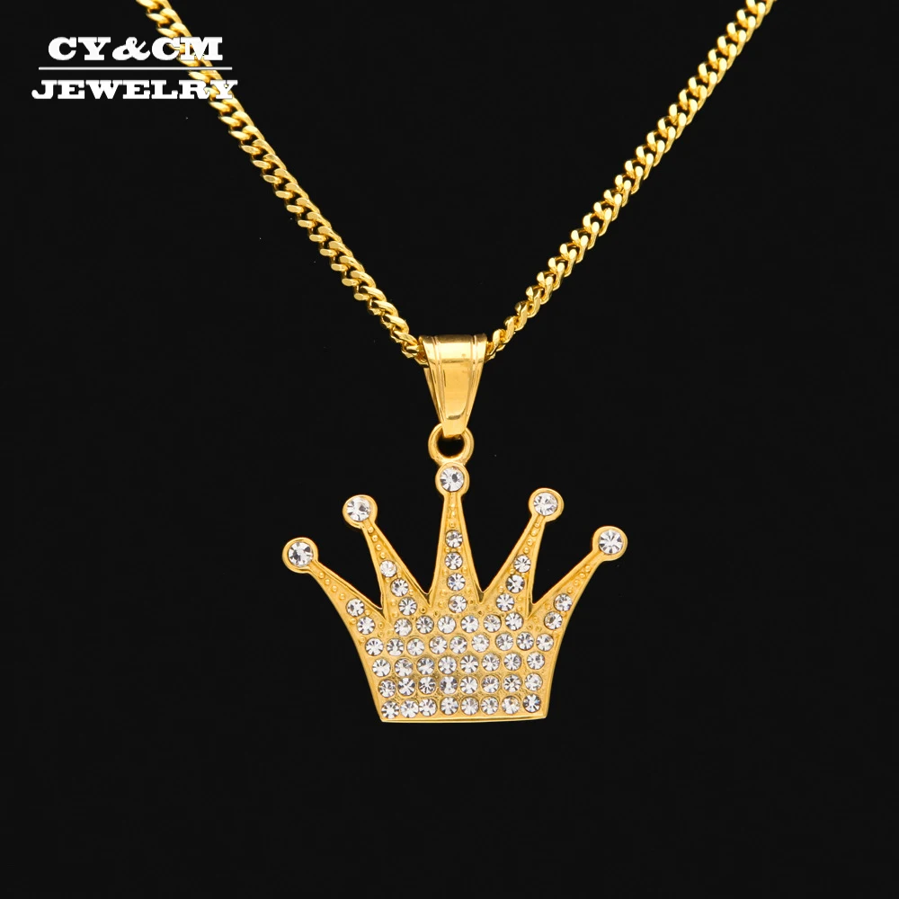 Promo CY&CM Hip hop Jewelry Egyptian Cross Ankh CZ Key Of Life Slender Pendant Necklace Gold Color Stainl