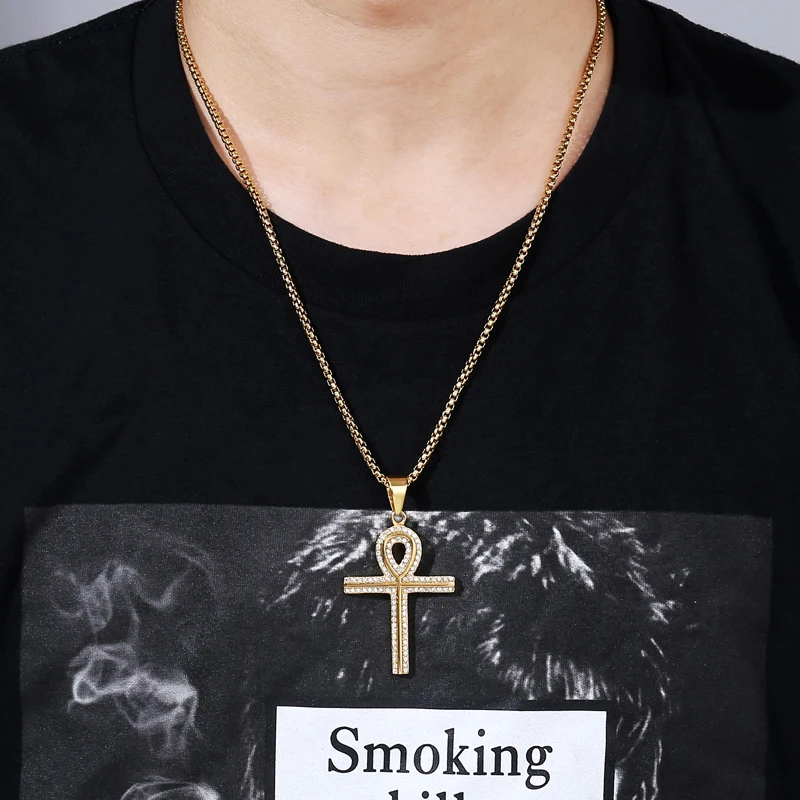 Best Hip Hop Ankh Egyptian Cross Men Women Gold Pendant & Necklace Pave Iced Zircon Key Of Life Pendants
