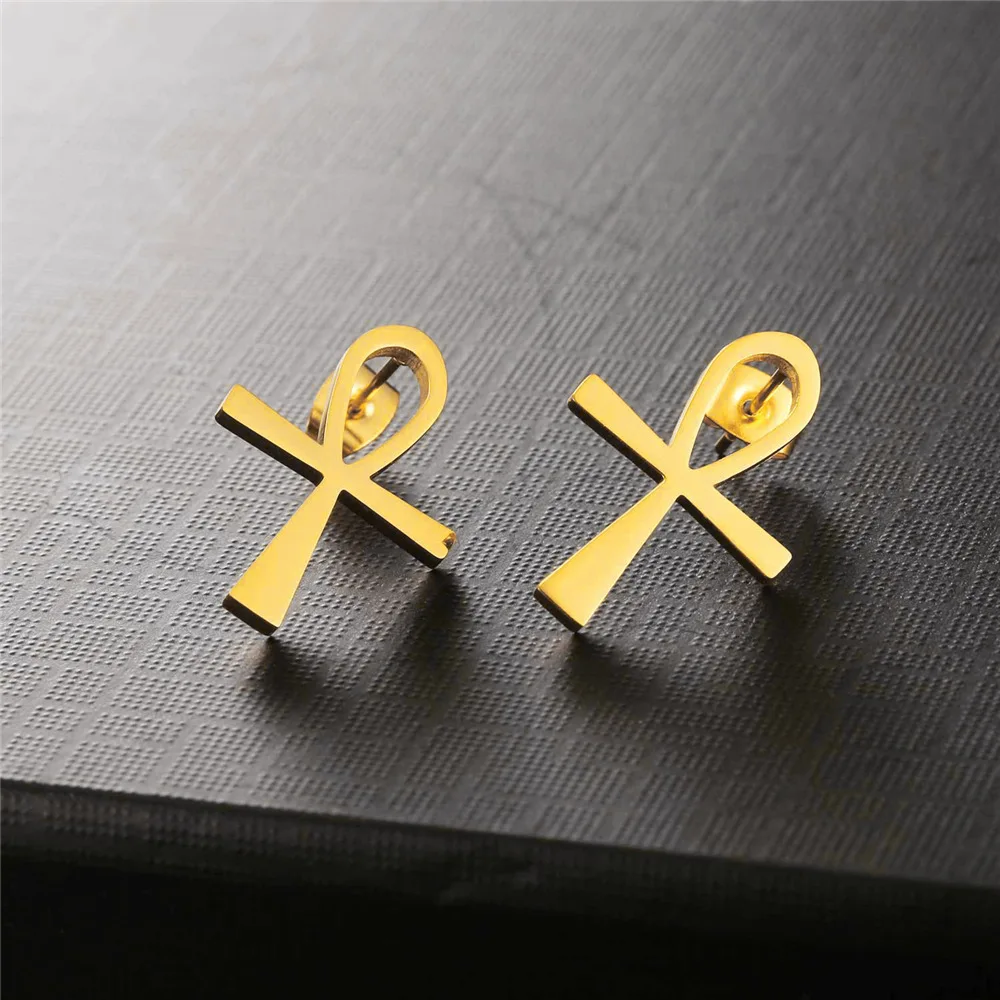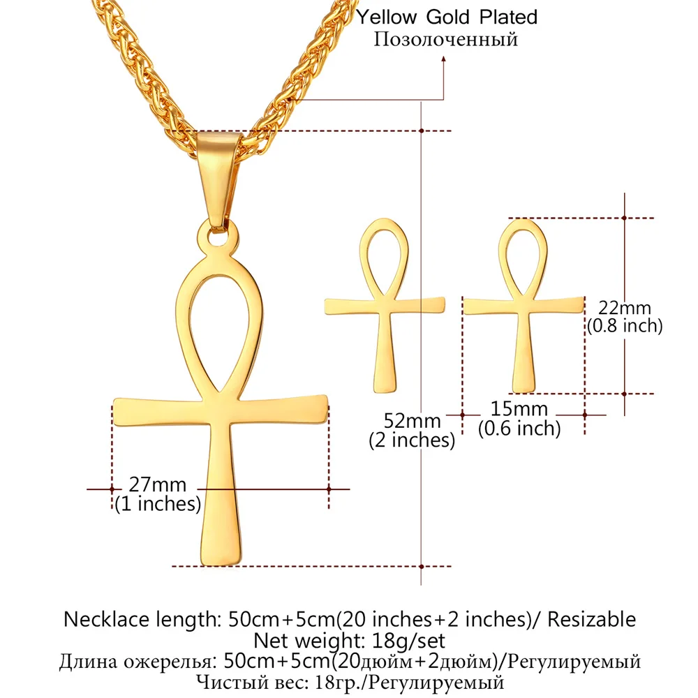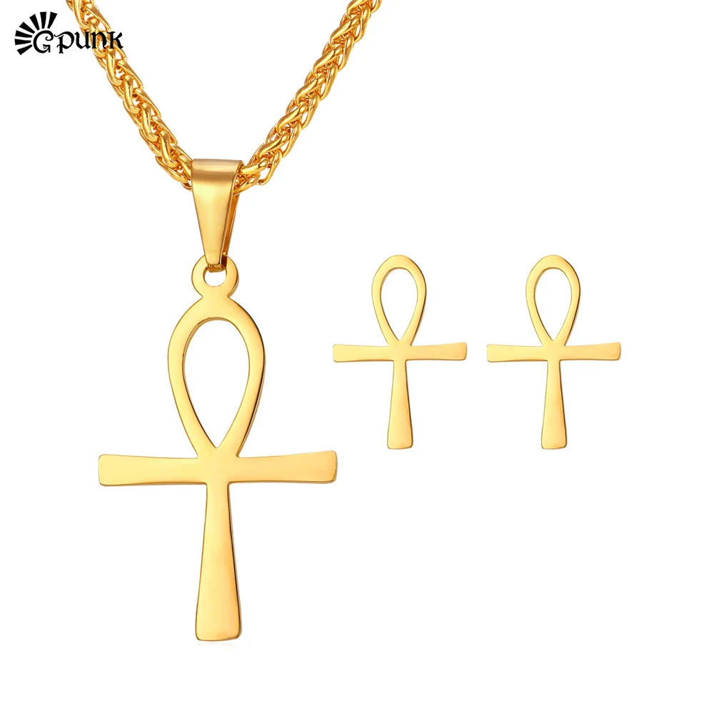 Promo cross earrings jewelry set women ankh jewelry key of the nile 316L stainless steel necklace earring