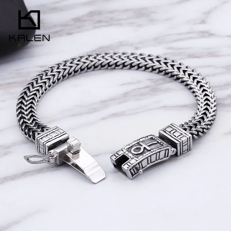 New 8mm Egyptian Ankh Symbol of Life Charm Bracelets For Men Women Stainless Steel Silver Mesh Linking