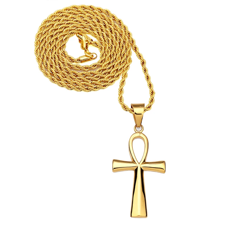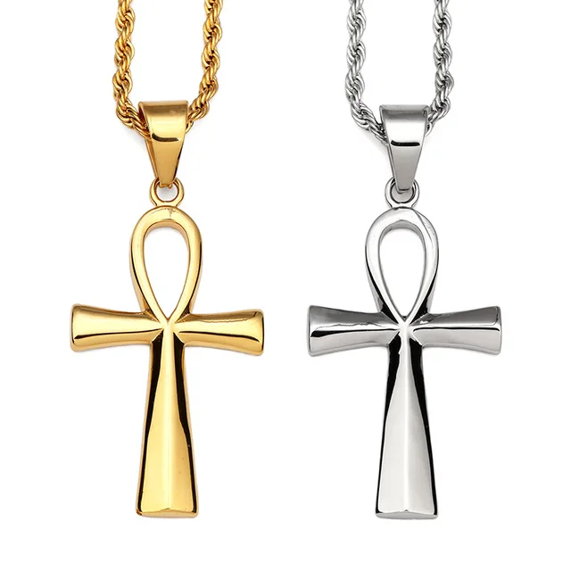 Promo Golden Egyptian Iverson Ankh Keys Crossing Necklaces Men Women Hip Hop Chains Bling Pendants Steel