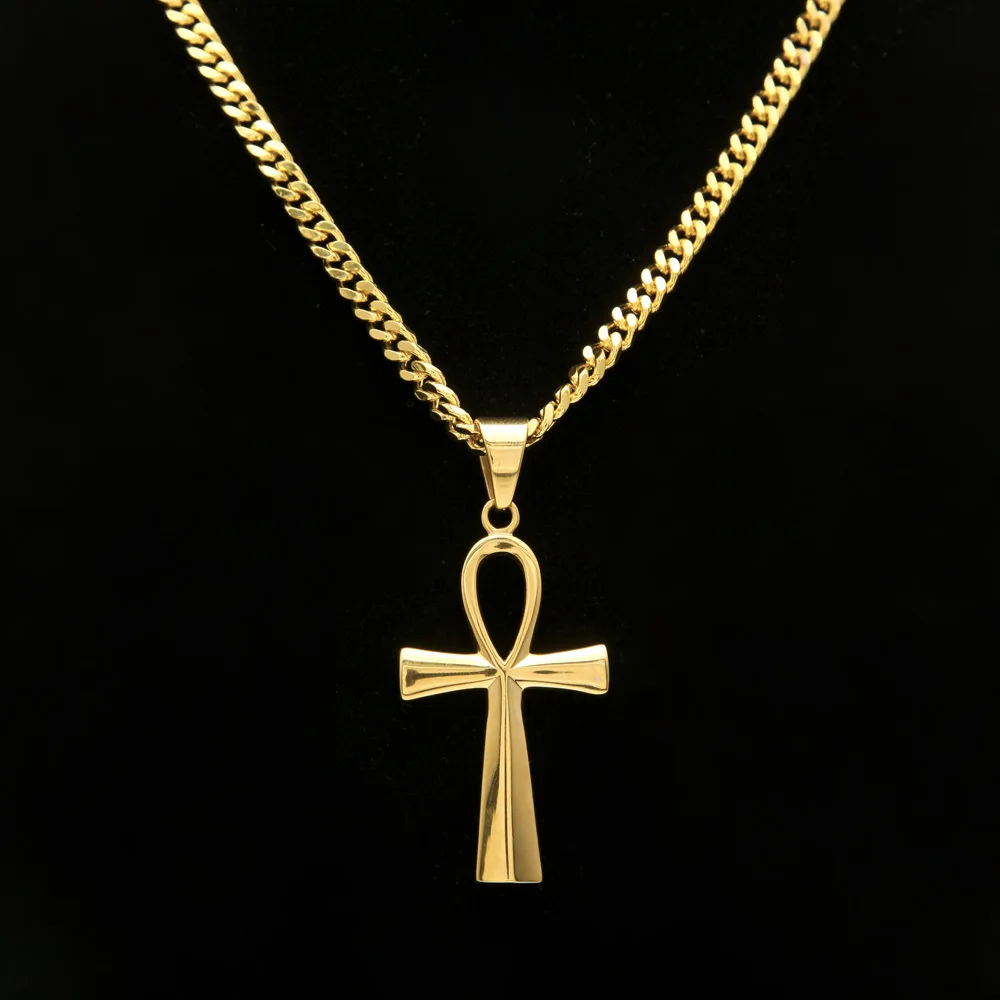 Promo Golden Egyptian Iverson Ankh Keys Chains Chokers Men Women Hip Hop Bling Crossing Jewelry Pendants
